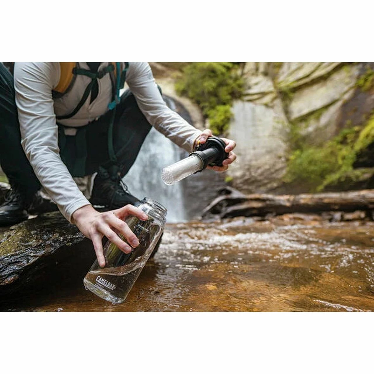 The path to reliably clean drinking water begins with the CamelBak Eddy® + filtered by LifeStraw®. Whether you are a couple days into a backcountry trip or looking for an everyday water bottle, you need a trustworthy source for safe water wherever you roam. Water passes through two separate stages of filtration – the Hollow Fiber Filter removes bacteria, parasites, and microplastics and the Ion Exchange Filter reduces lead, bad taste, chlorine and other unwanted chemicals. Leak-proof when closed and spill-proof when open, the universal Eddy + straw cap and bite-valve interface delivers a high flow for steady hydration when you need it most. The main vessel is made with Tritanâ„¢ Renew, a highly durable and lightweight plastic made with 50% recycled material. A more sustainable solution, Tritan Renew is made using a recycling process that’s more efficient than standard mechanical recycling, producing a superior material with less demand on finite resources. It’s odor and stain resistant and free of BPA, BPS, and BPF. Every purchase shares the gift of clean drinking water – one product, one child, one year of safe water.