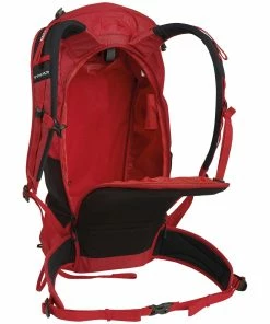 The zip top lid combines with a drawstring closure for extra security and protection from the elements. Additional technical features include two technical ice axe holders with head locker system and elastic cords, A-Frame ski carrying straps and external helmet carrying system that can be hidden when not in use, hydration bladder compatibility, and large external pockets for extra capacity.