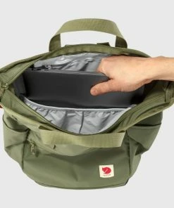 The Fjallraven High Coast Totepack is a perfect companion for everyday and travel, both in the city and on easier hikes. You can carry it on your shoulder, in your hand or on your back. In the main compartment there is a computer pocket with a padded bottom and a small pocket with a zipper. The whole bag can be folded and stored in its own front pocket when you do not need it. The outer fabric is waterproof but not zippers and seams so it can withstand some moisture but not a bath.