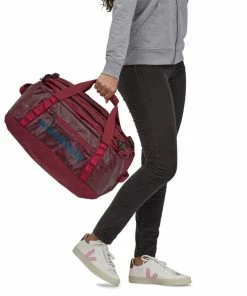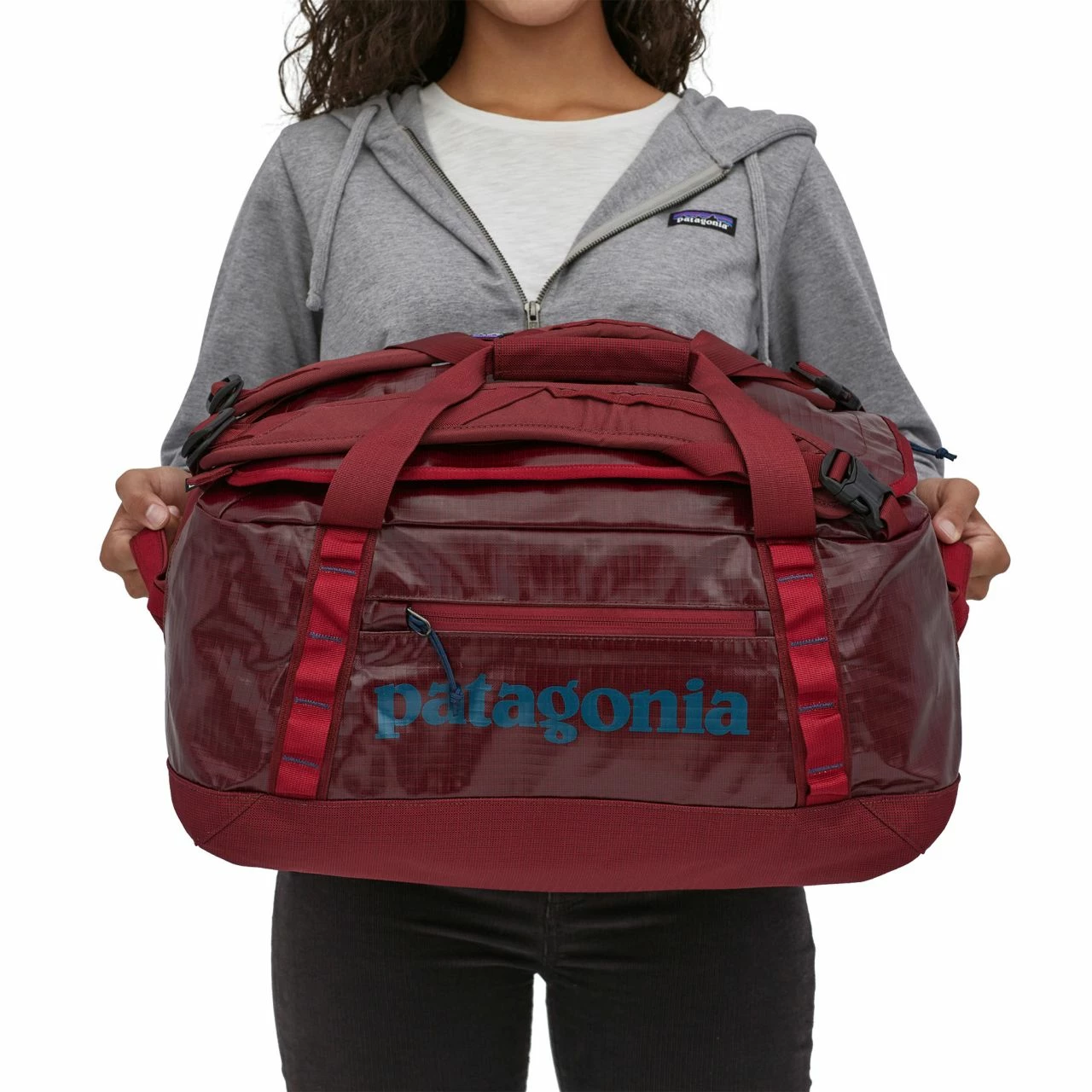 The smallest Black Hole duffel. Tough and highly weather-resistant, it keeps your gear protected and easily accessible. The main compartment opens via a zippered U-shaped lid, which has a pair of zip-closing mesh pockets on the underside for easily lost items like your lottery ticket. A zippered exterior pocket holds all the stuff you need quickly. The padded bottom panel adds structure and helps cushion the load when your duffel gets the baggage-handler treatment. Carrying options include padded, removable shoulder straps for a backpack carry, webbing handles with a snap closure, and haul loops at either end for linking multiple bags. Daisy chains let you lash additional gear to the outside. Made from burly, 900-denier 100% postconsumer recycled polyester ripstop with a TPU-film laminate and lined with 200-denier 100% recycled polyester with a polyurethane coating. Both fabrics have a DWR (durable water repellent) finish.